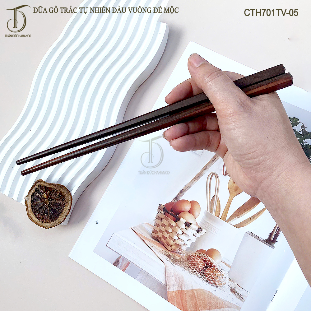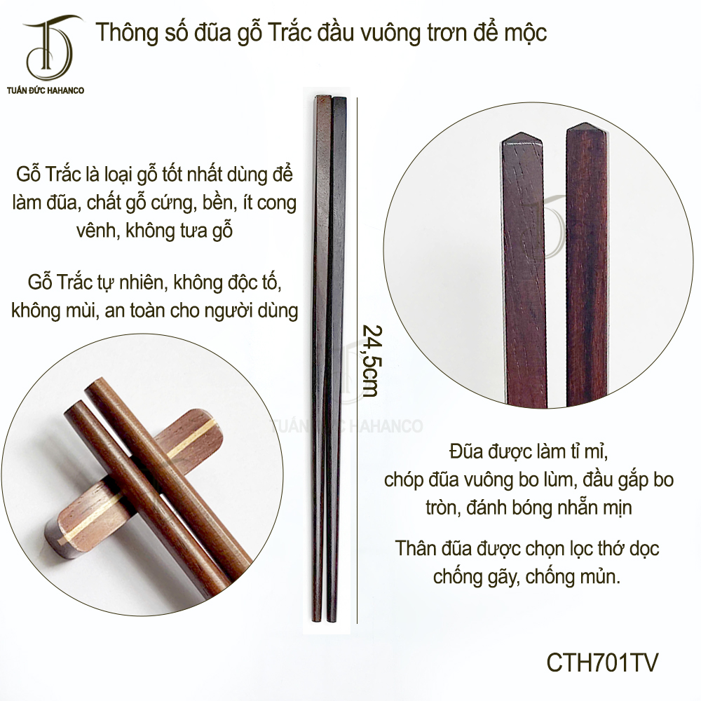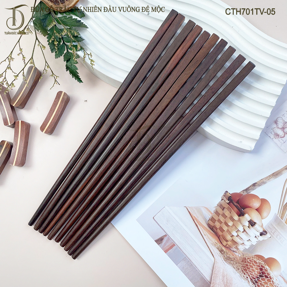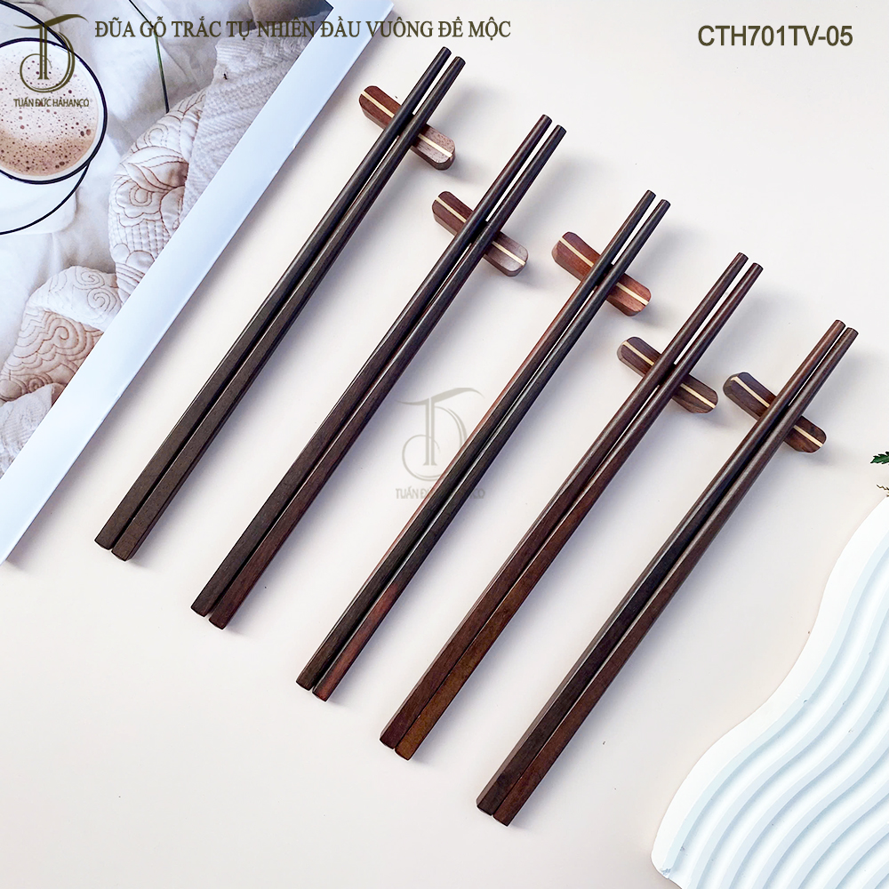 Combo 05 Đôi Đũa Gỗ Trắc Đầu Vuông Trơn Tự Nhiên Cao Cấp HAHANCO [CTH701TV-05] An Toàn Dễ Sử Dụng